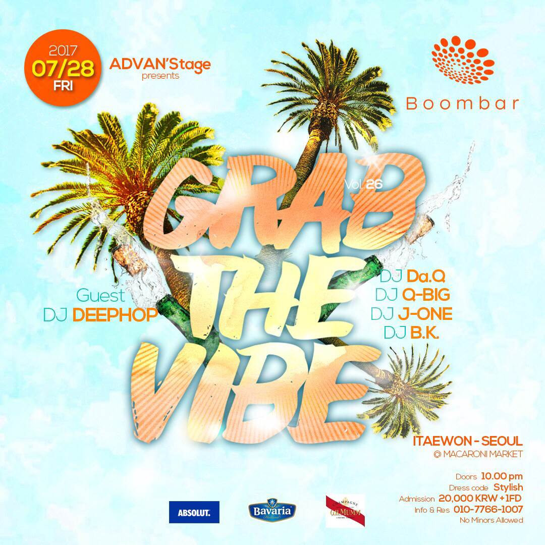 7월28일 금요일 Advan'STAGE의 "GRAB the VIBE"라는 Tittle로 이태원 핫플레이스 BoomBar에서 열린다.